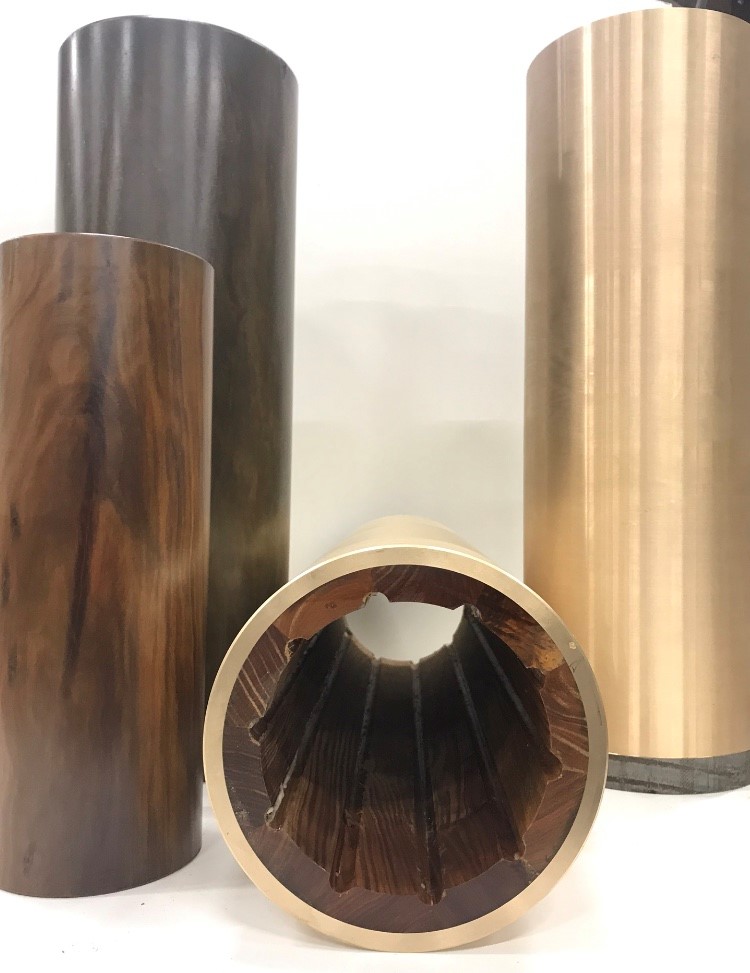 To gain a deeper understanding of lignum vitae, it is important to understand that it is an anomaly of nature. It is the only known plant containing no silica. Its hardness is like aluminum. It is saturated in a guaiac resin lubricant in every cell, bound by interlocking long chain molecules in a tenacious cellulose structure, giving it a mixture of enormous compressive strength, as well as lubricity capable of operating on a mixed mode for dry starts and when speed allows to go hydrodynamic. These qualities set lignum vitae apart and speaks to the tenacity of a material capable of standing up to dirty salt water in a 33 year old aircraft carrier. Manmade materials, by design, cannot distribute all required components into every cell, leaving voids of lubrication and structure, leading to wiping, smearing and melting onto the shaft.